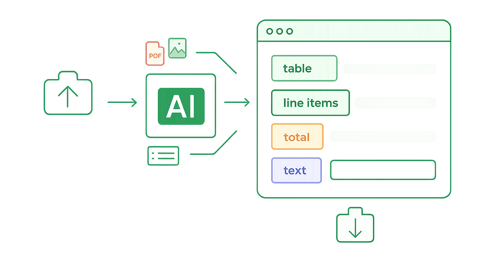 Komos could extract structured data from PDFs, images, and Excel files with high precision. Feed the results directly into your browser workflows.